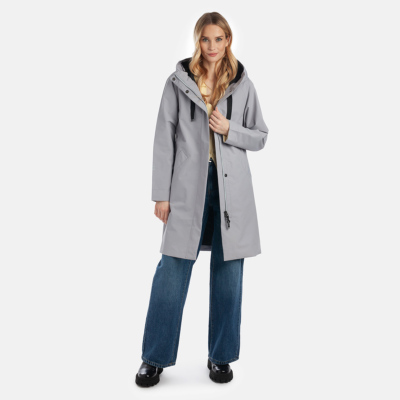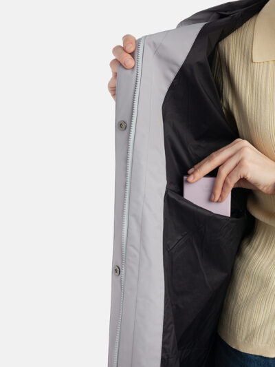 Women’s waterproof and windproof coat, suitable for spring and autumn. The outer fabric is dry-touch - which means, it has a matte effect. The lining of the parka is soft. Adjustable hood and sleeve cuffs. The outer fabric is decorated with reflective details. The front closure feature hidden magnetic snaps. It is more loose fit coat.