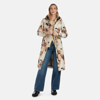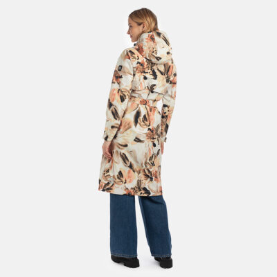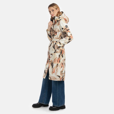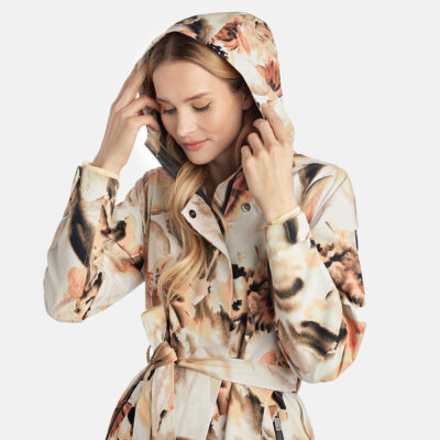 Water- and windproof ShellProtect coat for women. ShellProtect fabric is an innovative, three-layer material, therefore the product does not have a lining. Adjustable hood and sleeve cuffs. Waterproof taped seams. The coat features an adjustable waist belt for a customizable fit. Front two-way zipper with a snap button placket. Reflective elements on fabric.