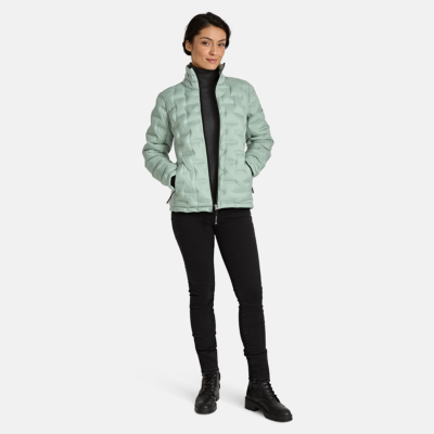 Insulated (80 g) water-repellent and windproof between-seasons jacket for women. The filling used for the jacket is an innovative recycled material that imitates the properties of a feather filling. The material is warm, dries fast and will not get lumpy after being washed. The top layer of the jacket is breathable, light and UV-resistant. The fabric is made with recycled fibres. The lining of the jacket is soft. The pockets have zippers.