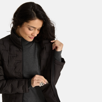 Insulated (80 g) water-repellent and windproof between-seasons jacket for women. The filling used for the jacket is an innovative recycled material that imitates the properties of a feather filling. The material is warm, dries fast and will not get lumpy after being washed. The top layer of the jacket is breathable, light and UV-resistant. The fabric is made with recycled fibres. The lining of the jacket is soft. The pockets have zippers.