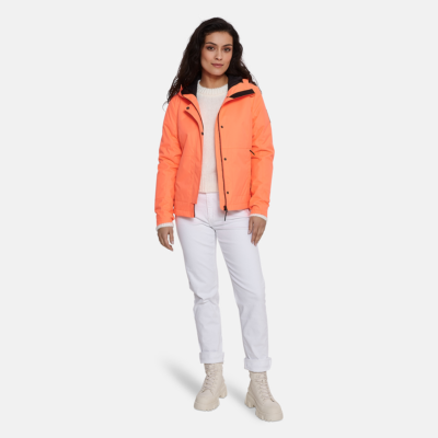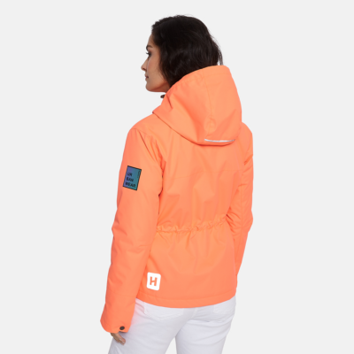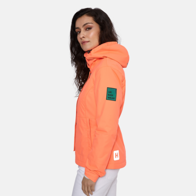 Insulated (40 g) water- and windproof jacket for women, suitable for spring and autumn. The top layer of the jacket is made of a breathable material. It has a soft lining, adjustable hood and sleeve ends. The jacket has an adjustable waist and hood with stoppers as well as waterproof, taped seams. It is decorated with reflective details.