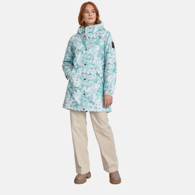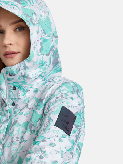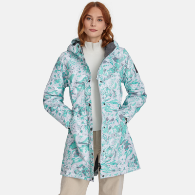 Women’s waterproof and windproof spring and autumn parka. Breathable fabric. Soft lining on the inside. Adjustable hood and sleeve ends. Drawstring tunnel with stoppers on waist. Waterproof taped seams. Reflective elements on fabric.