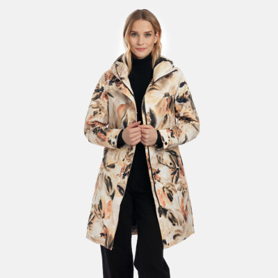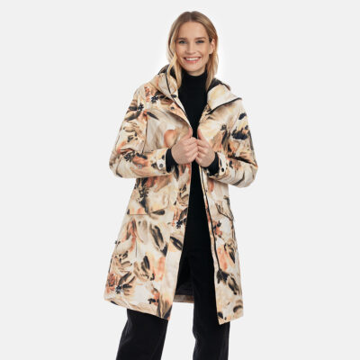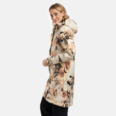 Insulated (40 g) water- and windproof parka for women, suitable for spring and autumn. The outer fabric is breathable. The lining of the parka is soft. Adjustable hood and sleeve cuffs. Adjustable waist with stoppers. Waterproof taped seams. The outer fabric is decorated with reflective details.