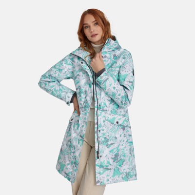 Insulated (40 g) water- and windproof parka for women, suitable for spring and autumn. The outer fabric is breathable. The lining of the parka is soft. Adjustable hood and sleeve cuffs. Adjustable waist with stoppers. Waterproof taped seams. The outer fabric is decorated with reflective details.