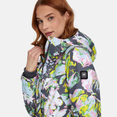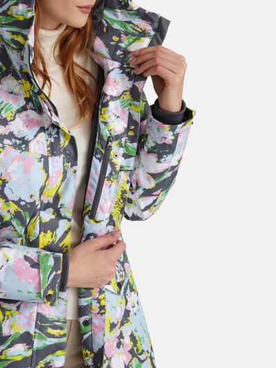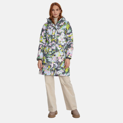 Insulated (40 g) water- and windproof parka for women, suitable for spring and autumn. The outer fabric is breathable. The lining of the parka is soft. Adjustable hood and sleeve cuffs. Adjustable waist with stoppers. Waterproof taped seams. The outer fabric is decorated with reflective details.