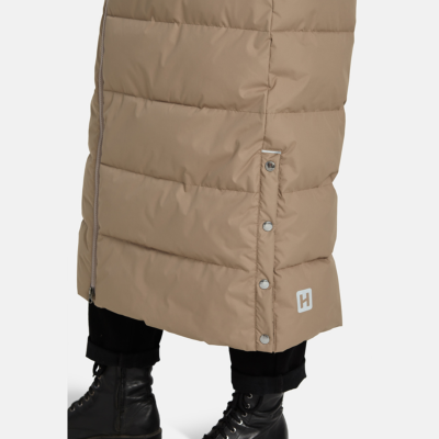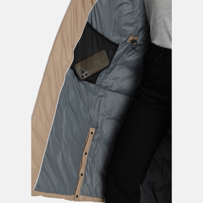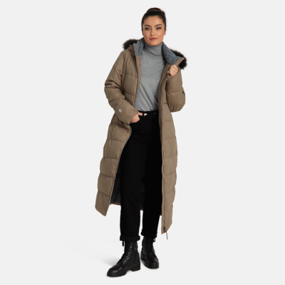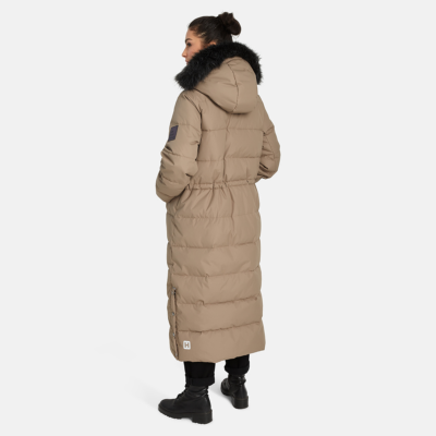 Women’s water- and windproof winter coat with 400 g insulation. Breathable outer fabric. Soft lining fabric inside the coat. Detachable hood fastens to the collar with snap buttons. Ribbed cuffs on sleeves. Rubber cord tunnel with stoppers on the waistline. Front two-way zipper. Detachable faux fur trim on hood. Reflective detailing has been added to the outer fabric of the coat for better visibility in the dark.