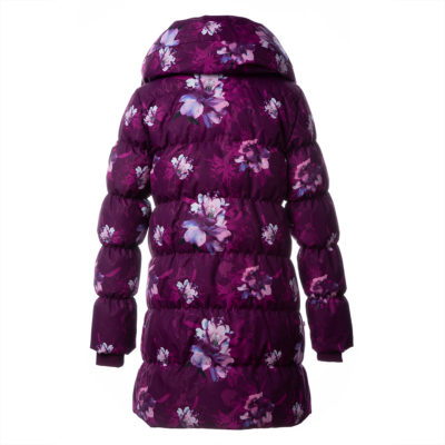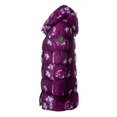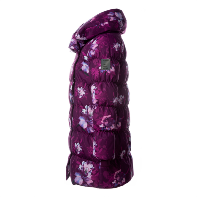 Modern women’s waterproof and windproof down coat. Breathable fabric. Soft lining on the inside. Down feathers and feathers for filling. Hood hidden in collar. Ribbed cuffs at sleeve ends. Two-way zipper covered with stud-press flap at front. Side seam pockets. Reflective logo on sleeve.