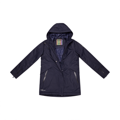 Women’s water- and windproof winter jacket with 200 g insulation. Breathable outer fabric. Soft lining fabric inside the jacket. Front zipper pockets. Adjustable hood and sleeve cuffs. Waterproof taped seams. Reflective detailing on outer fabric.