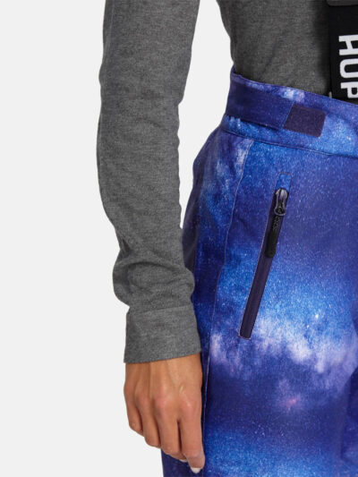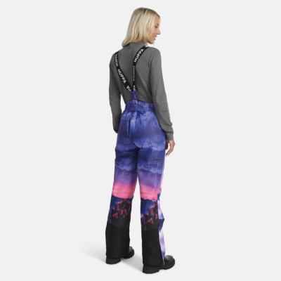 Women’s waterproof and windproof pants. Breathable fabric. Soft mesh lining on the inside of the pants. Adjustable removable braces. Adjustable waist. Integrated elastic band at the back of the waist. Integrated zippered pockets. Snow gaiters at leg ends. Zipper-adjustable leg end width. Waterproof taped seams. Reflective elements at the bottom.