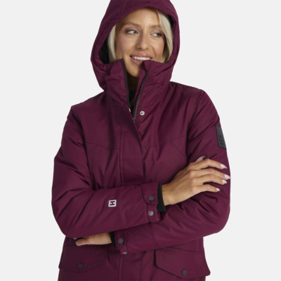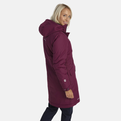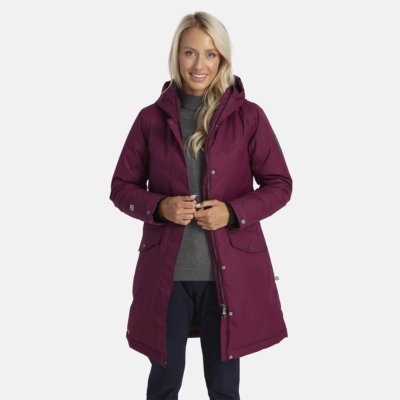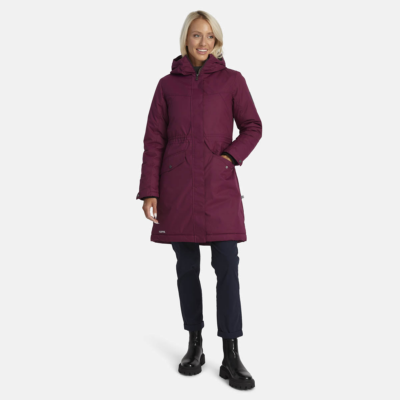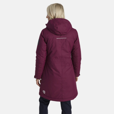 Women’s water- and windproof winter parka with 300 g insulation. Breathable outer fabric. Soft lining fabric inside the parka. Adjustable hood and sleeve cuffs. Rubber cord tunnel with stoppers on the waistline. Waterproof taped seams. Reflective detailing on outer fabric.