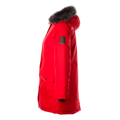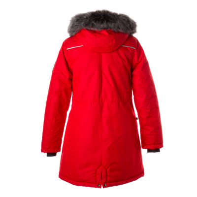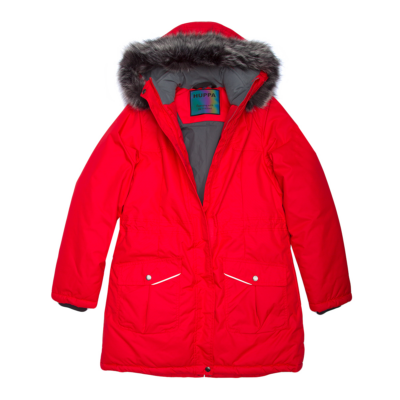 Women’s waterproof and windproof winter parka. Breathable fabric. Soft lining on the insid.e Removable snap-on hood. Ribbed cuffs at sleeve ends. Drawstring tunnel with stoppers on waist. Waterproof taped seams. Faux fur trim on hood. Reflective elements on fabric.