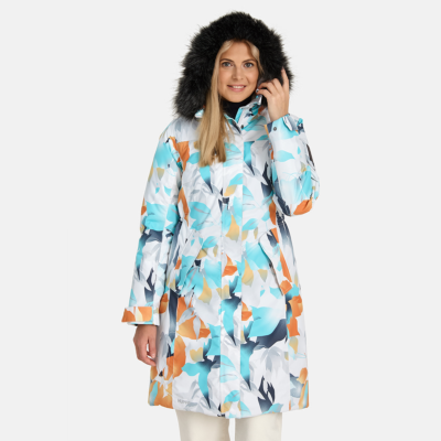 Women’s water- and windproof winter parka with 200 g insulation. Breathable outer fabric. Soft fabric on the inside of the parka. Sheepskin imitation lining at the upper back and inside of the hood. Adjustable hood. Ribbed cuffs on sleeves. Adjustable sleeve cuffs. Front two-way zipper with a snap button placket. Rubber cord tunnel with stoppers on the waistband. Waterproof taped seams. Detachable faux fur trim on hood. Reflective detailing on outer fabric.